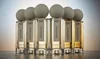 Bottle of Missoni fragrance placed in white, yellow and orange surreal background. Photographed by Andy Carson London-Based Still Life Photographer.