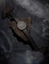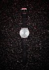 Pilgrim watch slightly buried in small volcanic rocks glowing with heat. Still Life Photograph by London Based Still Life Photographer Andy Carson