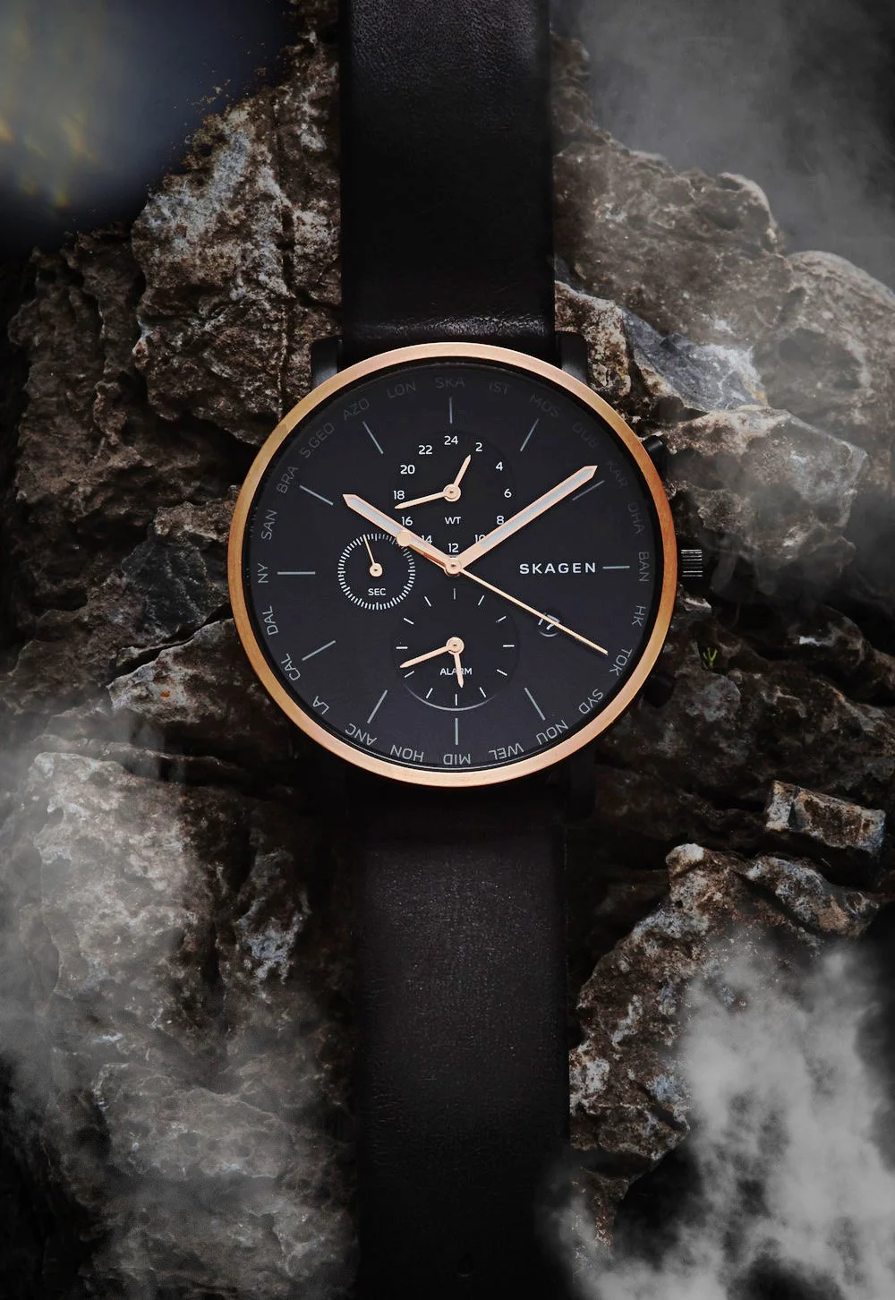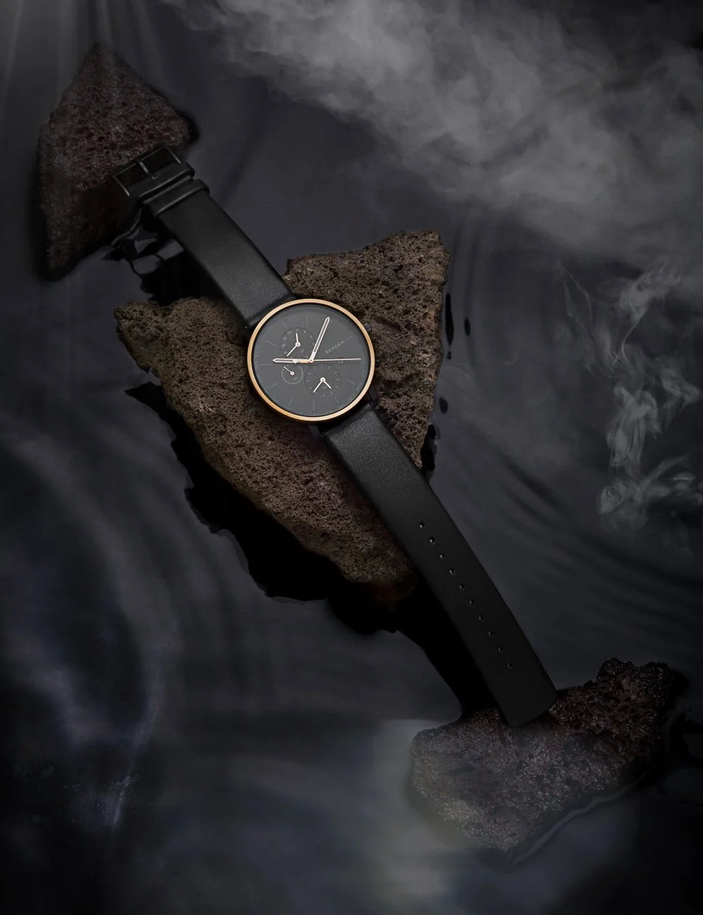 Portrait of Skagen watch in shadows. Still Life Photograph by London Based Still Life Photographer Andy Carson